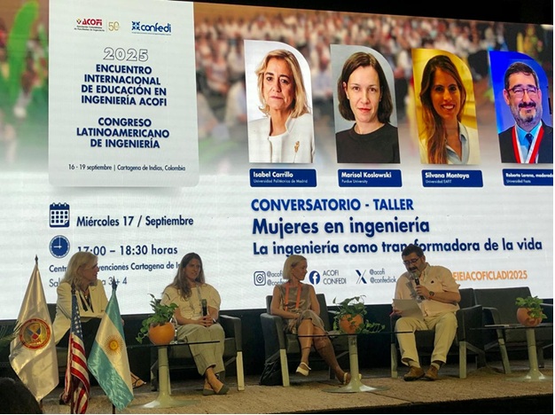 El 17 de septiembre, entre las 17:00 y las 18:30 horas, se realizó el conversatorio con el lema "La ingeniería como transformadora de la vida". Contó con la participación de Marisol Koslowski (Purdue University, EE.UU.), Isabel Carrillo Ramiro (Universidad Politécnica de Madrid, España) y Silvana Montoya-Noguera (Universidad EAFIT, Colombia), bajo la moderación de Roberto Giordano Lerena. En este espacio se abordaron tres ejes centrales: las acciones efectivas que pueden tomar las facultades de ingeniería para reducir las brechas de género, el liderazgo femenino en la ingeniería y la academia, y el rol fundamental de los hombres como aliados en la construcción de espacios más inclusivos. La dinámica permitió la interacción con la audiencia, generando reflexiones colectivas desde la educación en ingeniería.